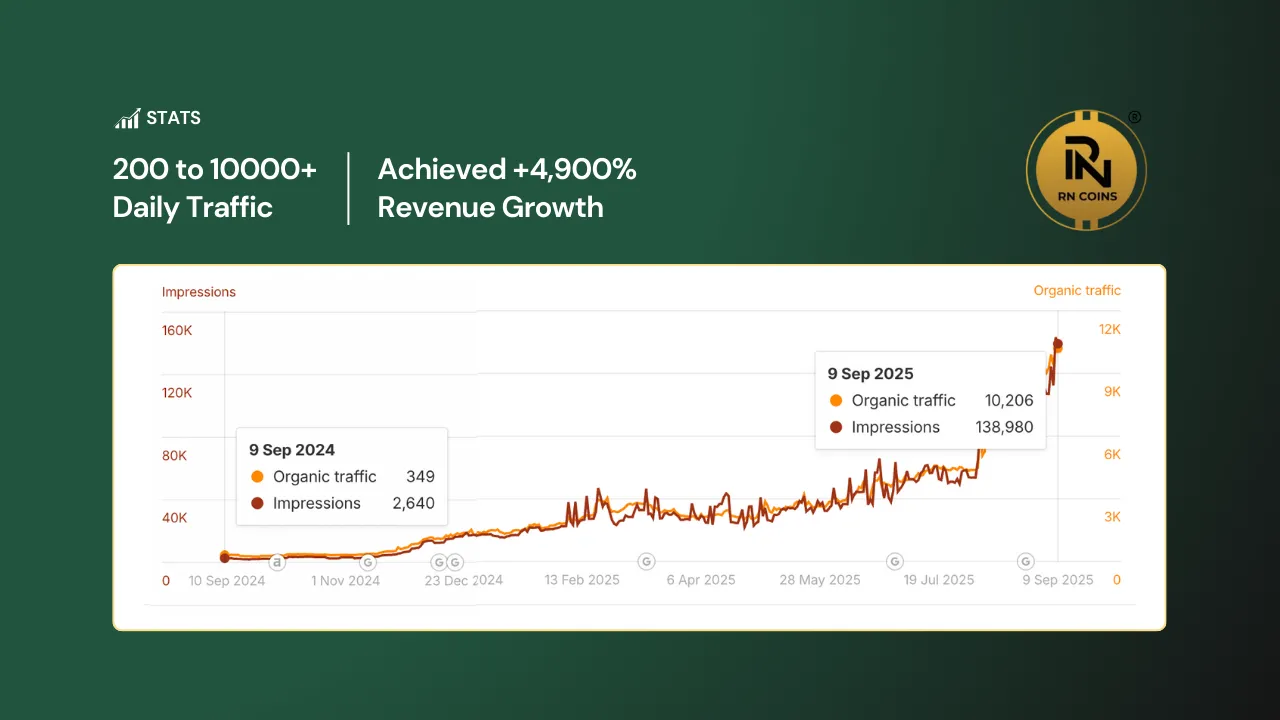 The Results: In under two years, RN Coins was transformed into a dominant force in the numismatics space, achieving staggering growth not just in traffic, but in tangible business revenue and market presence.